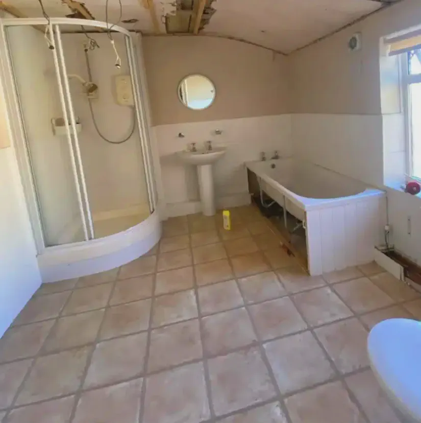 A tágas helyiségben rejlő lehetőségeket felismerve, döntés született a tér átalakításáról. A zuhanyzó önálló kabinná alakítása mellett döntöttek, ami praktikus megoldásnak ígérkezett. "A méretek lehetővé tették a felosztást, így logikus lépés volt a külön zuhanyzó kialakítása" - hangzott a vélemény. A bontási munkálatok során lelepleződött a valódi állapot: a csempék alatt romok, a falak mélyen sérültek, teljes vakolás nélkül lehetetlen lett volna továbblépni.