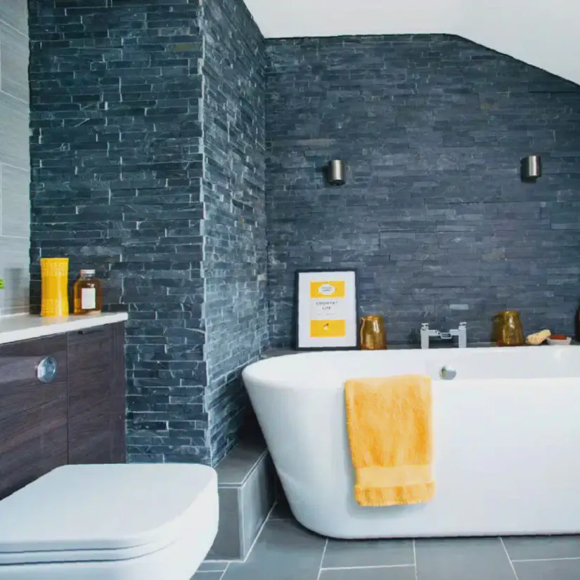 A sötét árnyalatok néha lehangoló hatást kelthetnek, ha nem találóan alkalmazzuk őket. Könnyű bakot lépni velük. Viszont ha fémes kiegészítőkkel – akár ecsetekkel, rézzel vagy polírozott fémekkel – kombináljuk őket, akkor egészen más dimenzióba emelhetjük a helyiséget. A tökéletesen megválasztott sötét kövek és a mély tónusú színek valódi luxussá varázsolhatják a fürdőt.