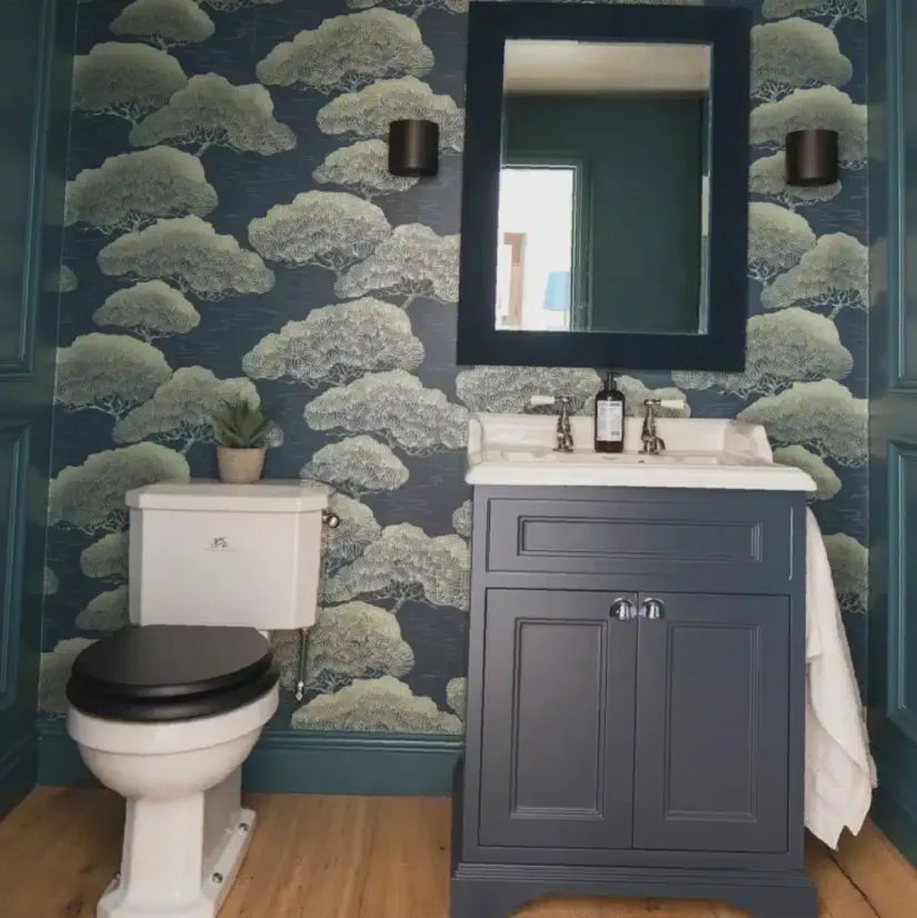 „Még a legkisebb helyiségek is megérdemlik a merész, sötét tónusokat – a titok az egyensúlyban rejlik. A földszinti mosdó, amit gyakran elhanyagolnak, valójában tökéletes terület a legvadabb tervezési ötletek kipróbálására. Mivel kicsi a tér, a kockázat minimális, de a hatás lenyűgöző.” Közelebb hajol, és hozzátesz: „A megvilágítás itt alapvető fontosságú. Legyen szó nappali fényről vagy gondosan kiválasztott lámpákról, egy jól megvilágított helyiségben a sötét árnyalatok drámai hatást keltenek, nem pedig nyomasztóvá válnak. Fontos a rétegzett világítás – fali lámpák a hangulathoz, látványos mennyezeti lámpa a drámai hatásért, és akár egy hátul megvilágított tükör is praktikus megoldásként. Így a tér mindig kényelmes és esztétikus marad, akár nappal, akár éjszaka.”