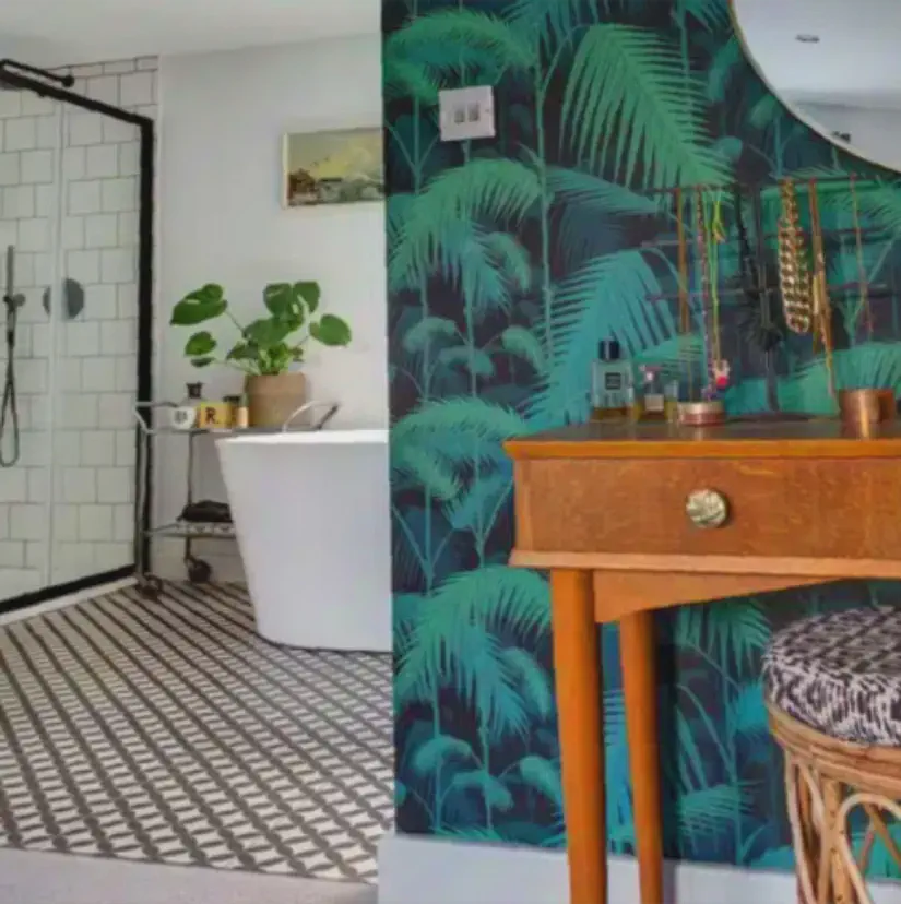 A jó design titka ott rejlik, hogy olyasvalamivel indítunk, amit szívből szeretünk. Nálam ez egy trópusi pálmákat ábrázoló tapéta volt – vibráló zöld árnyalatai és lebegő formái azonnal elvarázsoltak. Ez a kezdeti választás szolgált alapul az egész tér koncepciójának, minden későbbi döntés ebből fakadt.